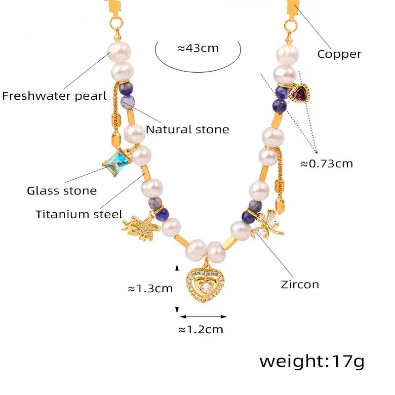 freshwater pearl titanium steel natural stone necklace