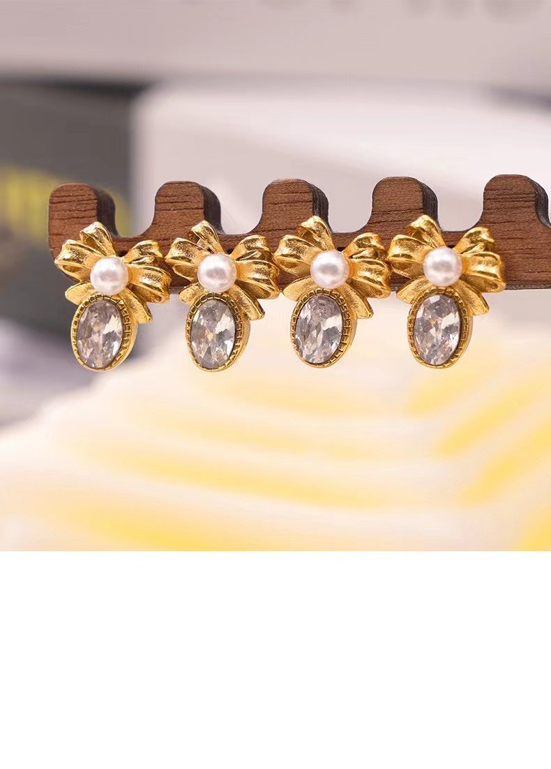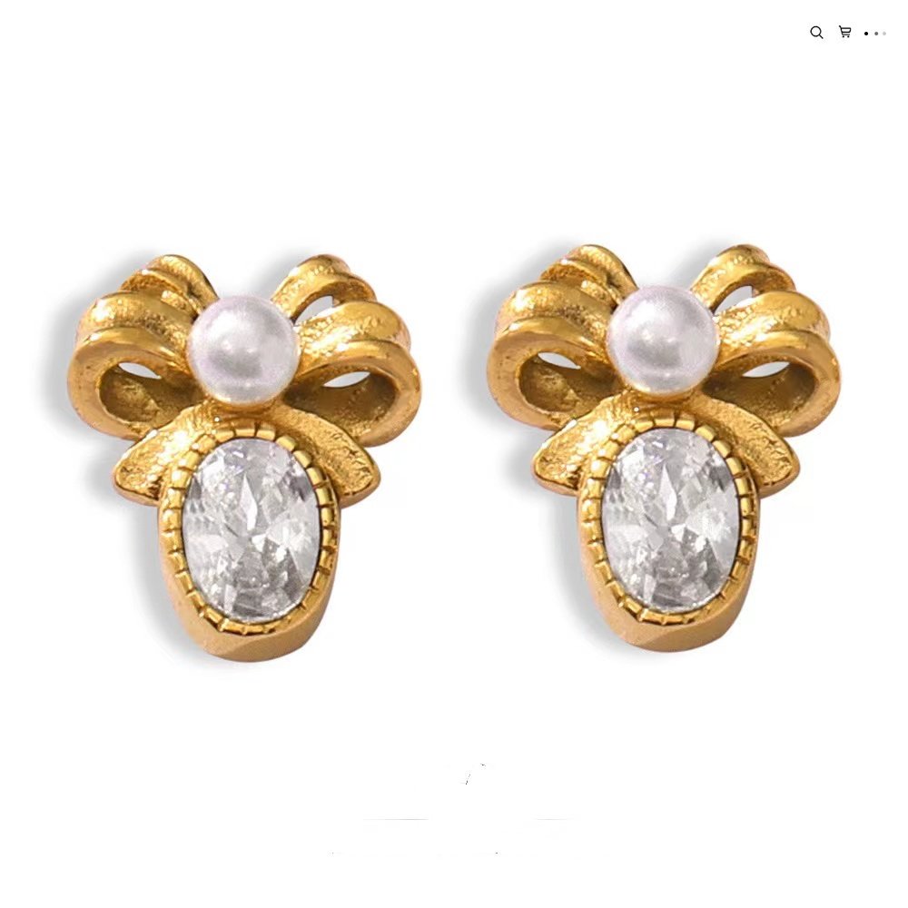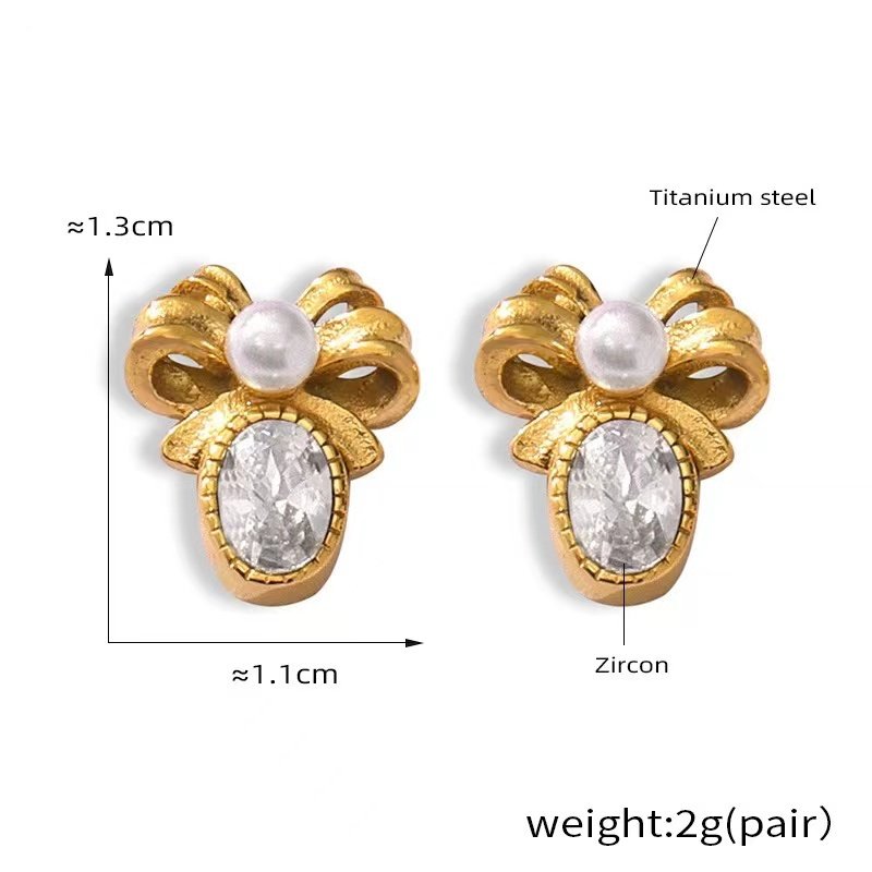 Be the first to review “titanium steel pearl zircon gold plated bow earrings”